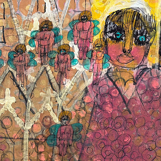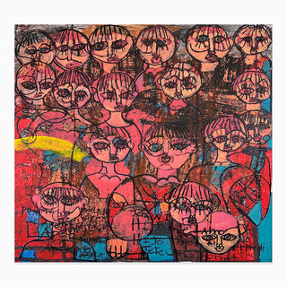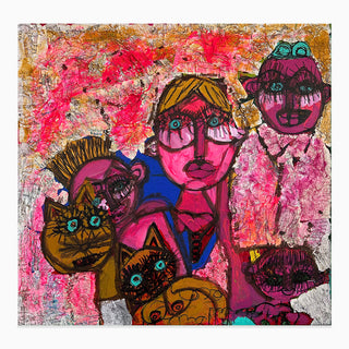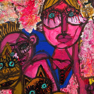 Born in Guatemala in 1986, López Durán is a self-taught artist with Asperger’s syndrome whose mother discovered his talent at seventeen. His fantastic perspective captures the most intriguing characters through a strong use of textures, text, and color.