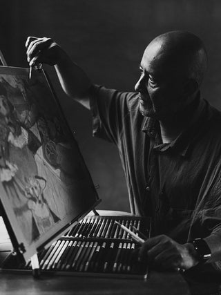 Born in Huehuetenango, Guatemala, in 1961, Rojas is a draftsman, self-taught painter, and philosopher. He challenges traditional styles and transports us to scenes of his life and that of the books he reads.