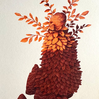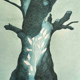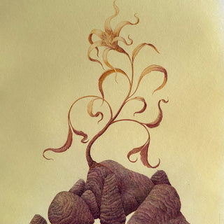 His compositions are rooted in natural themes, often capturing organic forms and textures with remarkable depth and precision. Currently, he works in the heart of Guatemala City, in a harmonious and carefully organized studio apartment that mirrors the essence of his art.