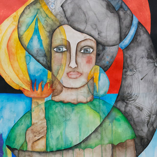 Born in Guatemala in 1978, Moran started painting from a young age. Later, she studied archaeology in college and dedicated her life to investigating the Mayan world. In 2000, she won a local painting competition, and from then on, she participated in many individual and collective exhibitions in Guatemala, Costa Rica, Spain, London, Vienna, and Mexico, establishing herself among the new generation of Guatemalan artists.